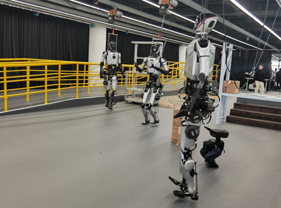 张江有全国首个异构人形机器人训练场。(李晔 摄)
